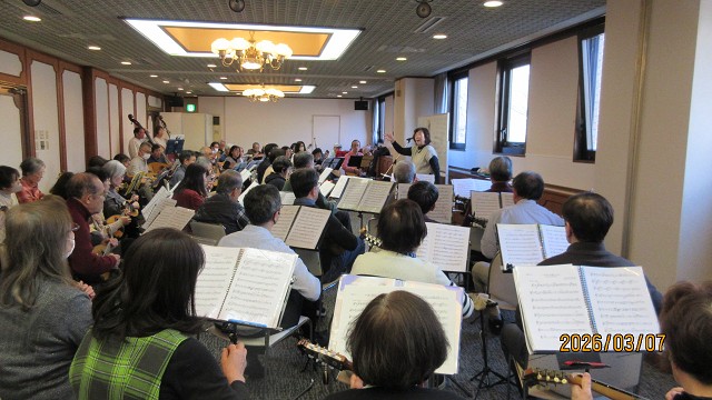 令和7年度 年間予定 令和7年9月14日(日)~9月15日(月・祝) 合同練習(合宿) 福岡市 冷泉閣ホテル川端 今年は天候にも恵まれ、各地から集まった会員が練習と親睦会を有意義に過ごしました。 令和7年12月6日(土) 長崎市大黒町 ホテルニュー長崎 長崎大学経済学部創立120周年記念祝賀会における演奏 令和8年3月7日(土)~3月8日(日) 合同練習(合宿) 福岡市 冷泉閣ホテル川端 本番約1か月前の合宿を楽しくかつ厳しく行いました。